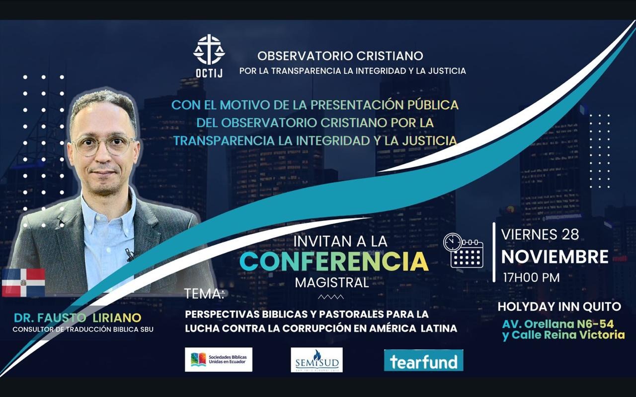 La fe, la ética y el compromiso ciudadano confluyen en una propuesta inédita por la transparencia en Ecuador. El Observatorio Cristiano por la Transparencia, la Integridad y la Justicia (OCTIJ) anuncia su lanzamiento oficial el 28 de noviembre de 2025, invitando a actores internacionales como Semisud, Sociedades Bíblicas Unidas y Tearfund a sumar fuerzas en la construcción de una cultura de integridad y justicia.